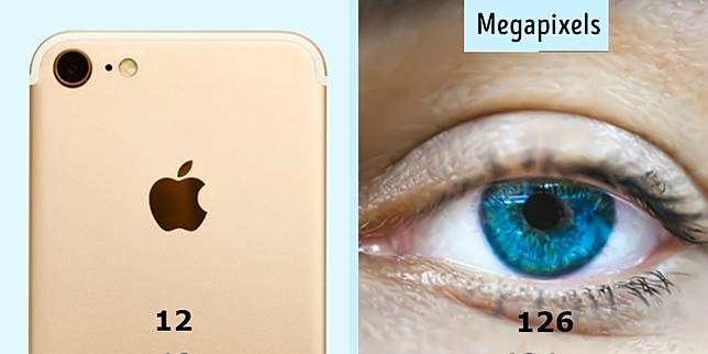 Jika mata adalah kamera, kualitas video yang dihasilkan dapat mencapai 21,45 GB per detik karena memiliki gambar yang sangat HD. Jika dibandingkan dengan iPhone 1 detik videonya hanya berukuran 375 MB.